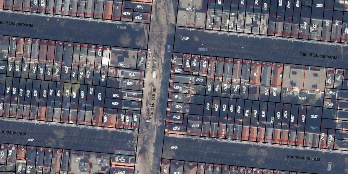 Het perceel waarop het adres ligt is ASD14-R-1300. De afkorting 'ASD14' staat voor kadastrale gemeente Amsterdam. Het perceel is 115 m² groot. Dat is kleiner dan de gemiddelde perceeloppervlakte in Amsterdam, dat op 354,38 m² ligt. Het grootste perceel in de kadastrale gemeente is 9,9 ha. Het kleinste perceel heeft een oppervlakte van 0 m². Er zijn 4 adressen aanwezig op het perceel. In de Basisregistratie Kadaster (BRK) werden de grenzen van het perceel geregistreerd op 06-10-2006.