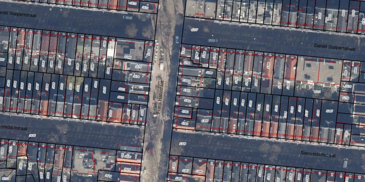 Het adres is gelegen op perceel 1301 in de sectie R en de kadastrale gemeente Amsterdam. De kadastrale aanduiding is aldus ASD14-R-1301. Het perceel is kleiner dan gemiddeld in Amsterdam. Het perceel is 116 m² groot, terwijl het gemiddelde ligt op 354,38 m². Het grootste perceel in de kadastrale gemeente is 9,9 ha. Het kleinste perceel heeft een oppervlakte van 0 m². Er zijn 8 adressen aanwezig op het perceel. De huidige grenzen van het perceel zijn digitaal in de Basisregistratie Kadaster (BRK) geregistreerd op 06-10-2006.