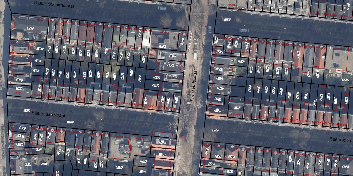 Het perceel waarop het adres ligt is ASD14-R-1620. De afkorting 'ASD14' staat voor kadastrale gemeente Amsterdam. Het perceel is 123 m² groot. Dat is kleiner dan de gemiddelde perceeloppervlakte in Amsterdam, dat op 354,38 m² ligt. Het grootste perceel in de kadastrale gemeente is 9,9 ha. Het kleinste perceel heeft een oppervlakte van 0 m². Op het perceel zijn 3 adressen aanwezig. De huidige grenzen van het perceel zijn digitaal in de Basisregistratie Kadaster (BRK) geregistreerd op 09-10-2006.