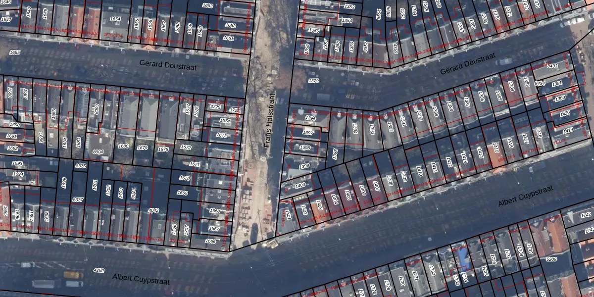 Het perceel waarop Frans Halsstraat 87-E staat heeft een oppervlakte van 73 m². Dit is een klein perceel. De perceeloppervlakte wordt geregistreerd door het Kadaster. Gedetailleerde informatie over de maten van dit perceel kunt u vinden in het rapport Kadastrale kaart met maatvoering van Frans Halsstraat 87-E.