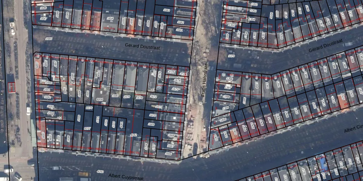 Het perceel waarop het adres ligt is ASD14-R-1673. De afkorting 'ASD14' staat voor kadastrale gemeente Amsterdam. Het perceel is 67 m² groot. Dat is kleiner dan de gemiddelde perceeloppervlakte in Amsterdam, dat op 354,38 m² ligt. Het kleinste perceel in de kadastrale gemeente is 0 m² groot. De grootste perceeloppervlakte is 9,9 ha. Er zijn 4 adressen aanwezig op het perceel. De laatste wijziging in het de Basisregistratie Kadaster (BRK) was op 06-10-2006.
