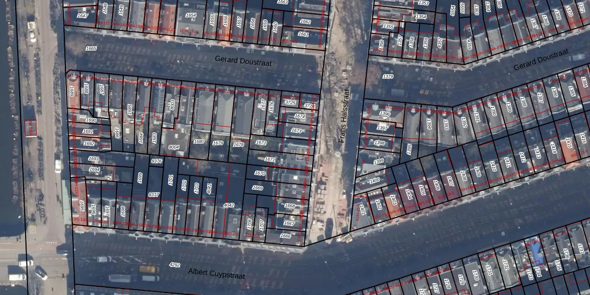 Het adres is gelegen op perceel 1672 in de sectie R en de kadastrale gemeente Amsterdam. De kadastrale aanduiding is aldus ASD14-R-1672. Het perceel is kleiner dan gemiddeld in Amsterdam. Het perceel is 111 m² groot, terwijl het gemiddelde ligt op 354,38 m². Het kleinste perceel in de kadastrale gemeente is 0 m² groot. De grootste perceeloppervlakte is 9,9 ha. Op het perceel liggen in totaal 4 adressen. De huidige grenzen van het perceel zijn digitaal in de Basisregistratie Kadaster (BRK) geregistreerd op 06-10-2006.