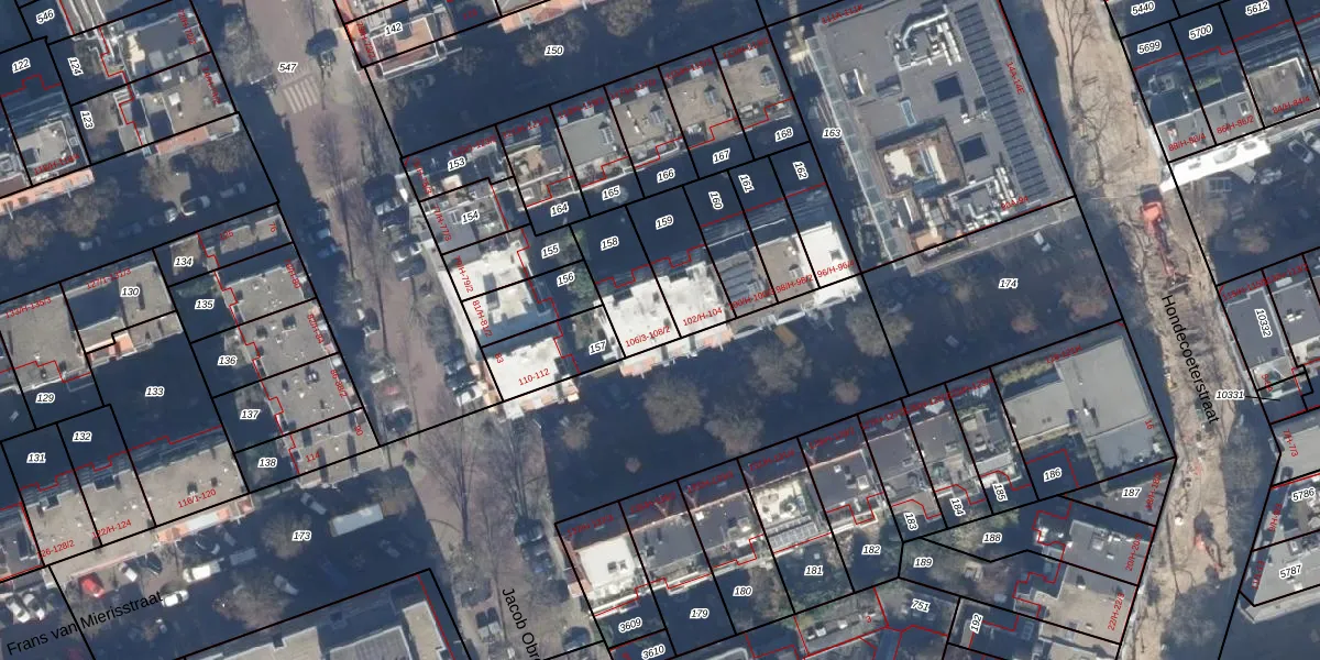 Het perceel waarop Frans van Mierisstraat 108-H staat heeft een oppervlakte van 196 m². Dit is een middelgroot perceel. De perceeloppervlakte wordt geregistreerd door het Kadaster. Gedetailleerde informatie over de maten van dit perceel kunt u vinden in het rapport Kadastrale kaart met maatvoering van Frans van Mierisstraat 108-H.