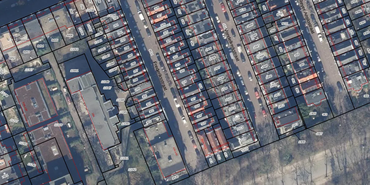 Het perceel waarop Frederiksstraat 25-A staat heeft een oppervlakte van 84 m². Dit is een klein perceel. De perceeloppervlakte wordt geregistreerd door het Kadaster. Gedetailleerde informatie over de maten van dit perceel kunt u vinden in het rapport Kadastrale kaart met maatvoering van Frederiksstraat 25-A.
