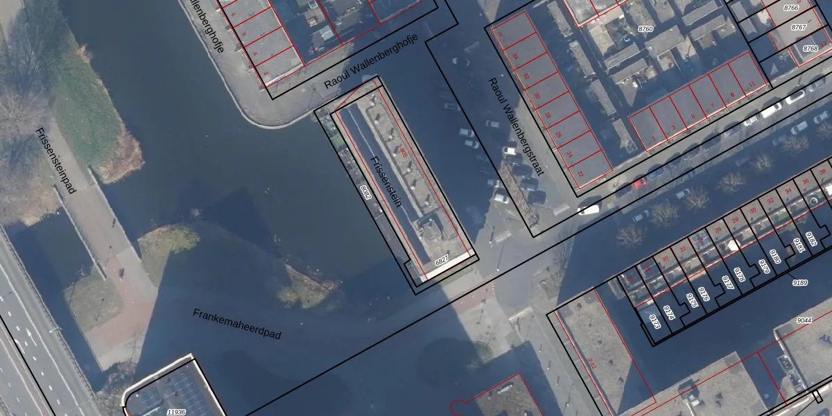 Het perceel waarop Frissenstein 401-B staat heeft een oppervlakte van 686 m². Dit is een groot perceel. De perceeloppervlakte wordt geregistreerd door het Kadaster. Gedetailleerde informatie over de maten van dit perceel kunt u vinden in het rapport Kadastrale kaart met maatvoering van Frissenstein 401-B.