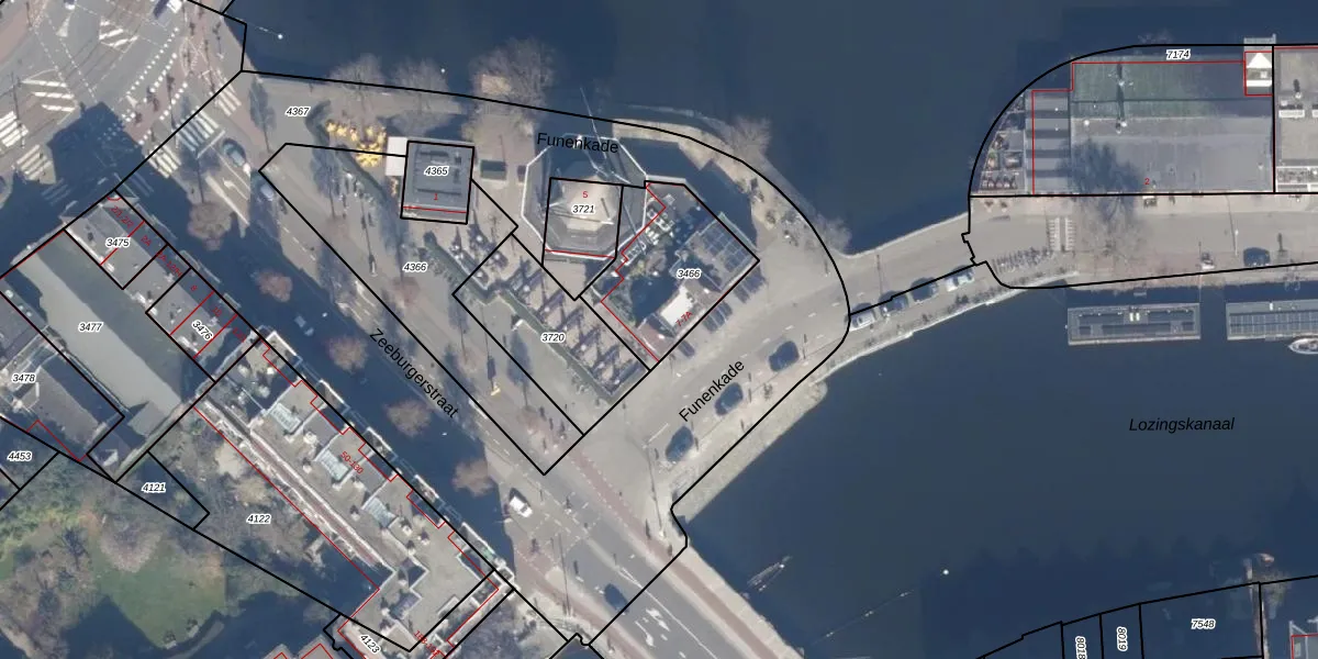 Funenkade 7-A is gelegen op kadastraal perceel ASD11O3466. Deze kadastrale aanduiding is uniek en wordt gebruikt door het Kadaster om eigendomsrechten en andere zakelijke rechten vast te leggen. Het perceel maakt onderdeel uit van de kadastrale gemeente Amsterdam.