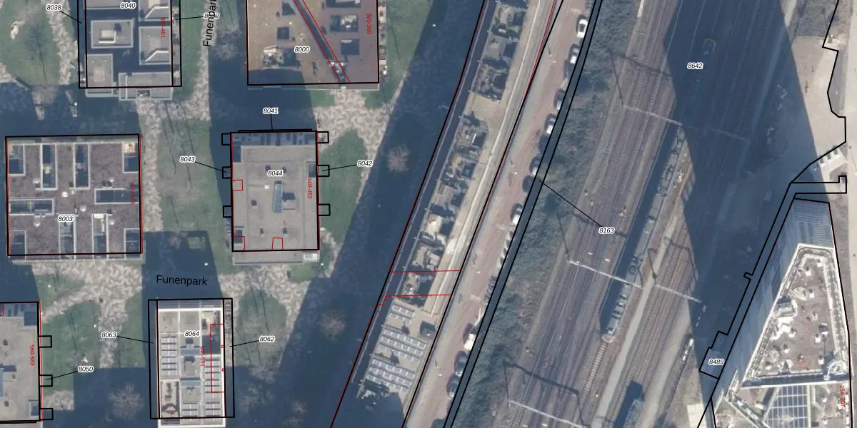 Het perceel waarop Funenpark 154 staat heeft een oppervlakte van 8973 m². Dit is een zeer groot perceel. De perceeloppervlakte wordt geregistreerd door het Kadaster. Gedetailleerde informatie over de maten van dit perceel kunt u vinden in het rapport Kadastrale kaart met maatvoering van Funenpark 154.