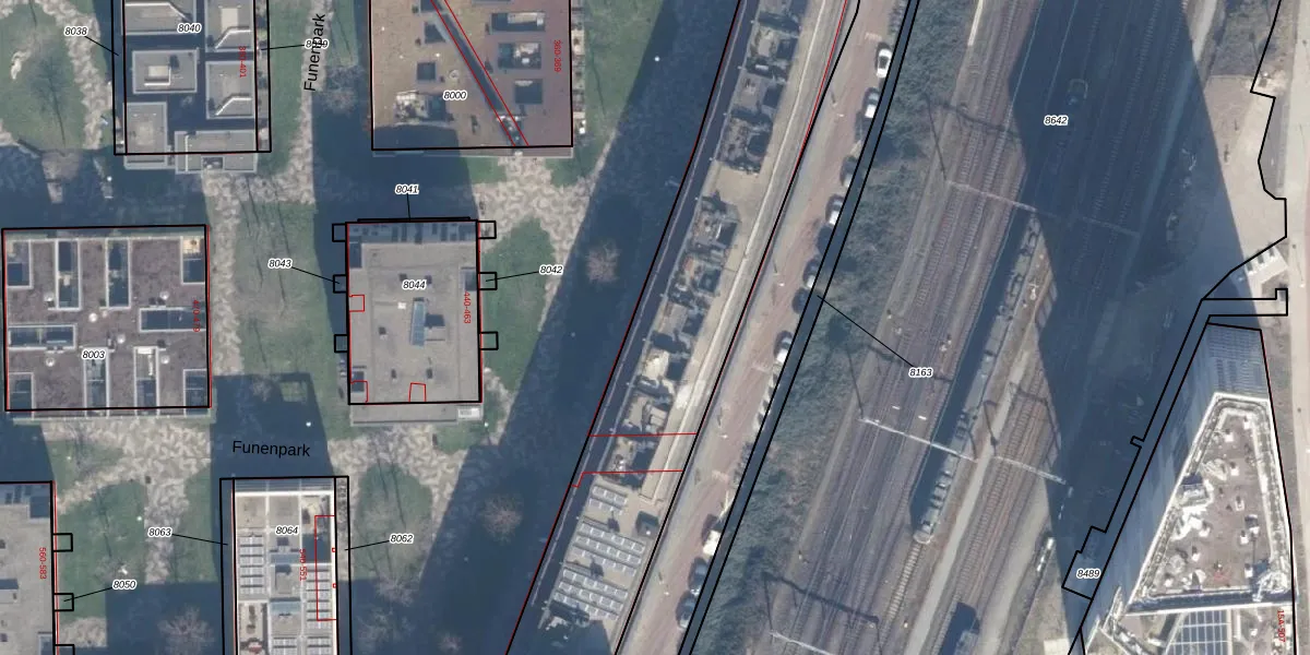 Het perceel waarop Funenpark 165 staat heeft een oppervlakte van 8973 m². Dit is een zeer groot perceel. De perceeloppervlakte wordt geregistreerd door het Kadaster. Gedetailleerde informatie over de maten van dit perceel kunt u vinden in het rapport Kadastrale kaart met maatvoering van Funenpark 165.