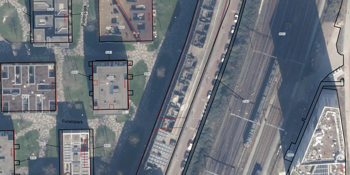 Het perceel waarop Funenpark 171 staat heeft een oppervlakte van 8973 m². Dit is een zeer groot perceel. De perceeloppervlakte wordt geregistreerd door het Kadaster. Gedetailleerde informatie over de maten van dit perceel kunt u vinden in het rapport Kadastrale kaart met maatvoering van Funenpark 171.
