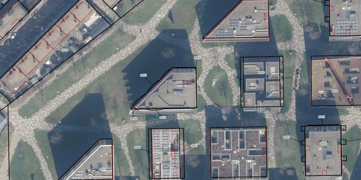 Funenpark 418 is gelegen op kadastraal perceel ASD02A8054. Deze kadastrale aanduiding is uniek en wordt gebruikt door het Kadaster om eigendomsrechten en andere zakelijke rechten vast te leggen. Het perceel maakt onderdeel uit van de kadastrale gemeente Amsterdam.