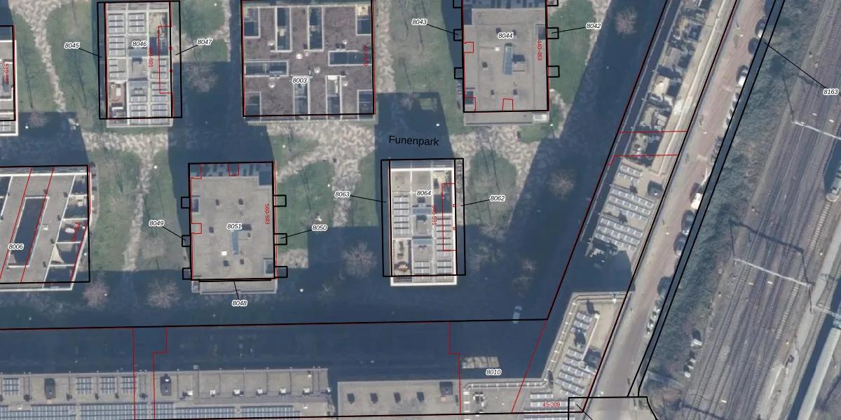 Funenpark 543 is gelegen op kadastraal perceel ASD02A8064. Deze kadastrale aanduiding is uniek en wordt gebruikt door het Kadaster om eigendomsrechten en andere zakelijke rechten vast te leggen. Het perceel maakt onderdeel uit van de kadastrale gemeente Amsterdam.