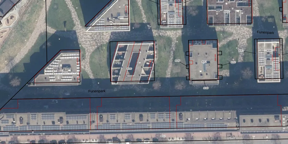 Funenpark 597 is gelegen op kadastraal perceel ASD02A8006. Deze kadastrale aanduiding is uniek en wordt gebruikt door het Kadaster om eigendomsrechten en andere zakelijke rechten vast te leggen. Het perceel maakt onderdeel uit van de kadastrale gemeente Amsterdam.