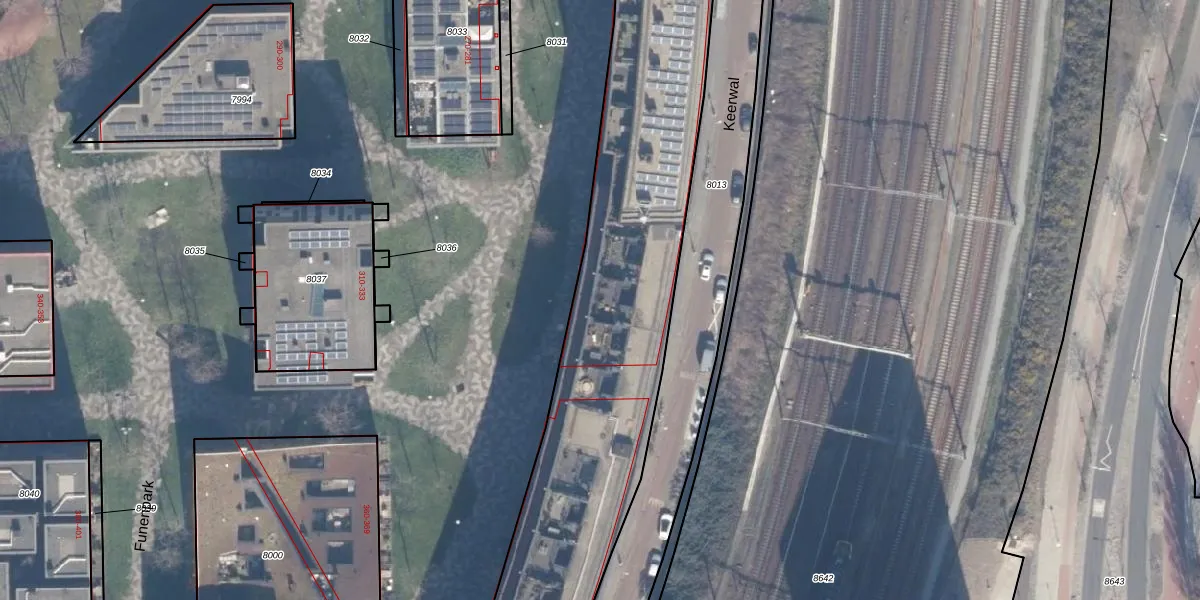 Het perceel waarop Funenpark 76 staat heeft een oppervlakte van 8973 m². Dit is een zeer groot perceel. De perceeloppervlakte wordt geregistreerd door het Kadaster. Gedetailleerde informatie over de maten van dit perceel kunt u vinden in het rapport Kadastrale kaart met maatvoering van Funenpark 76.