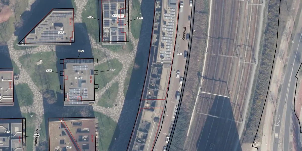 Het perceel waarop Funenpark 99 staat heeft een oppervlakte van 8973 m². Dit is een zeer groot perceel. De perceeloppervlakte wordt geregistreerd door het Kadaster. Gedetailleerde informatie over de maten van dit perceel kunt u vinden in het rapport Kadastrale kaart met maatvoering van Funenpark 99.