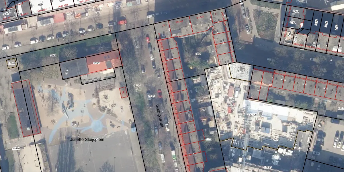 Gaaspstraat 13-H is gelegen op kadastraal perceel ASD18V6183. Deze kadastrale aanduiding is uniek en wordt gebruikt door het Kadaster om eigendomsrechten en andere zakelijke rechten vast te leggen. Het perceel maakt onderdeel uit van de kadastrale gemeente Amsterdam.
