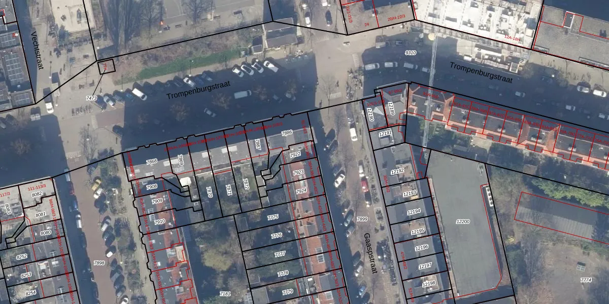 Het perceel waarop het adres ligt is ASD18-V-7922. De afkorting 'ASD18' staat voor kadastrale gemeente Amsterdam. Het perceel is 82 m² groot. Dat is kleiner dan de gemiddelde perceeloppervlakte in Amsterdam, dat op 558,8 m² ligt. Het grootste perceel in de kadastrale gemeente is 12,5 ha. Het kleinste perceel heeft een oppervlakte van 0 m². Op het perceel zijn 3 adressen aanwezig. De laatste wijziging in het de Basisregistratie Kadaster (BRK) was op 29-11-2006.