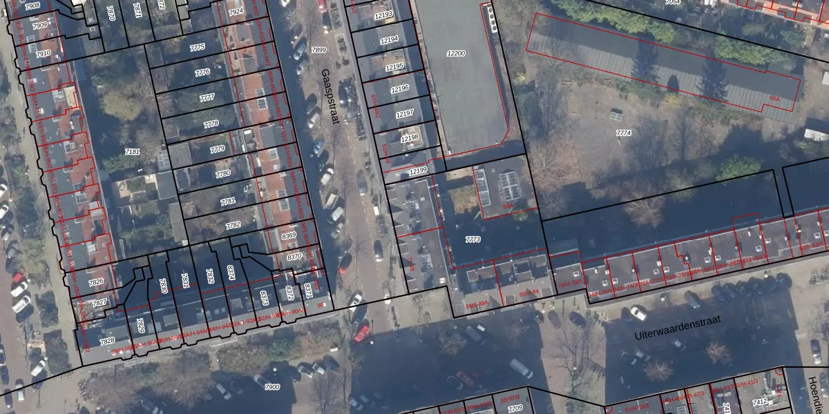 Gaaspstraat 57 is gelegen op kadastraal perceel ASD18V7773. Deze kadastrale aanduiding is uniek en wordt gebruikt door het Kadaster om eigendomsrechten en andere zakelijke rechten vast te leggen. Het perceel maakt onderdeel uit van de kadastrale gemeente Amsterdam.