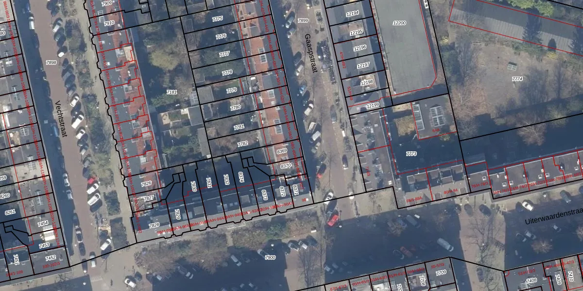 Het perceel waarop het adres ligt is ASD18-V-8369. De afkorting 'ASD18' staat voor kadastrale gemeente Amsterdam. Het perceel is 108 m² groot. Dat is kleiner dan de gemiddelde perceeloppervlakte in Amsterdam, dat op 558,8 m² ligt. Het kleinste perceel in de kadastrale gemeente is 0 m² groot. De grootste perceeloppervlakte is 12,5 ha. Op het perceel zijn 2 adressen aanwezig. In de Basisregistratie Kadaster (BRK) werden de grenzen van het perceel geregistreerd op 29-11-2006.