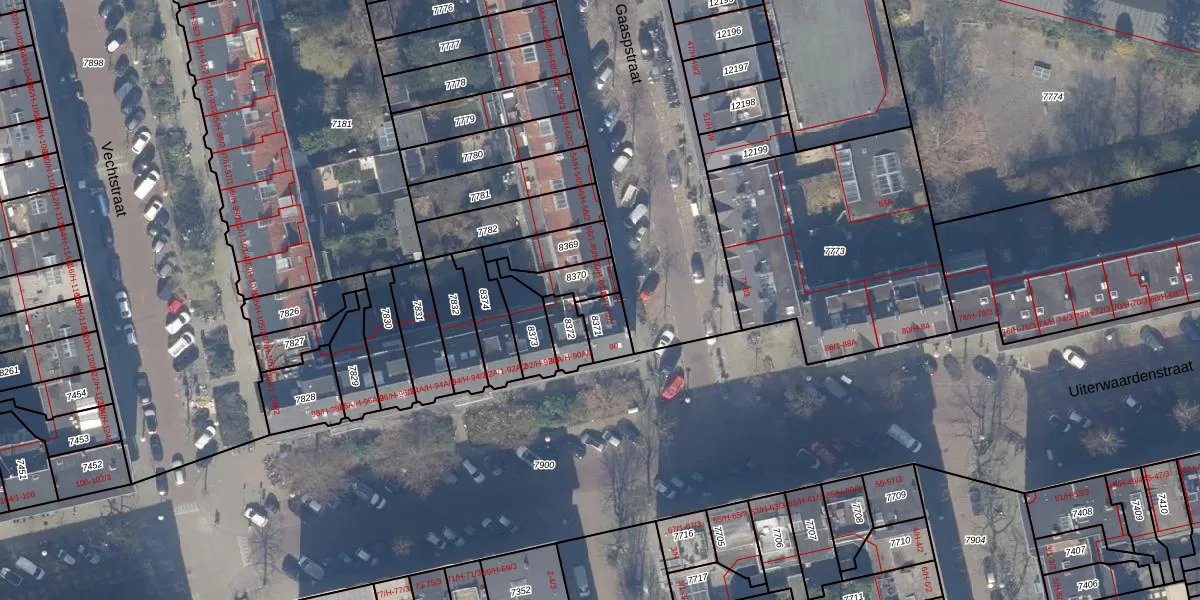 Het perceel waarop het adres ligt is ASD18-V-8371. De afkorting 'ASD18' staat voor kadastrale gemeente Amsterdam. Het perceel is 73 m² groot. Dat is kleiner dan de gemiddelde perceeloppervlakte in Amsterdam, dat op 558,8 m² ligt. Het kleinste perceel in de kadastrale gemeente is 0 m² groot. De grootste perceeloppervlakte is 12,5 ha. Op het perceel liggen in totaal 3 adressen. De huidige grenzen van het perceel zijn digitaal in de Basisregistratie Kadaster (BRK) geregistreerd op 29-11-2006.