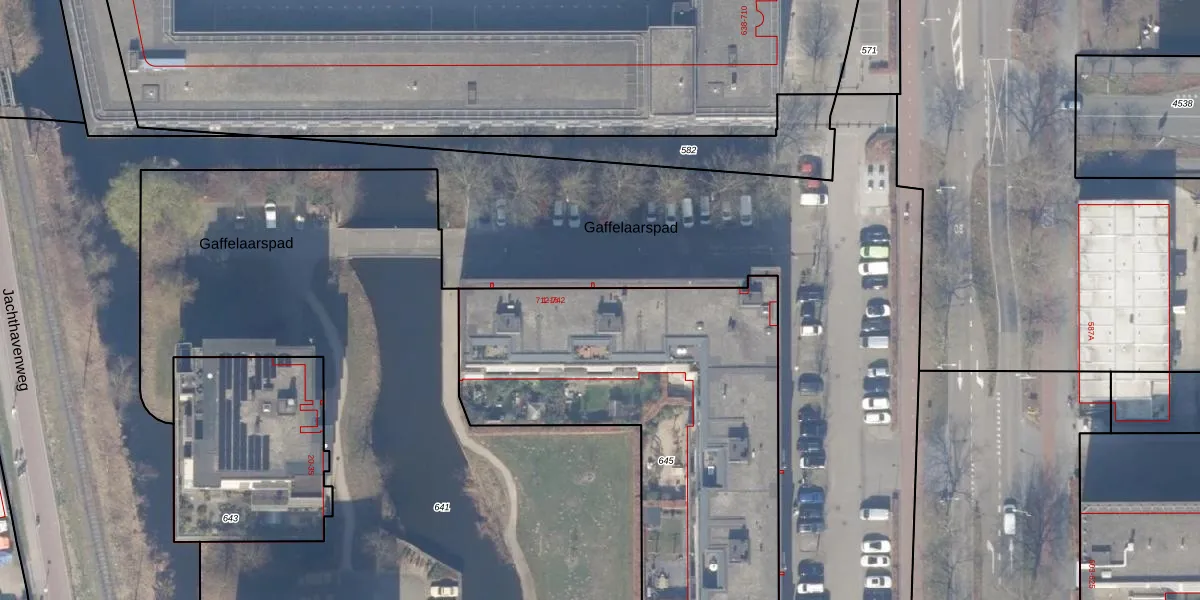 Gaffelaarspad 1 is gelegen op kadastraal perceel ASD25AD645. Deze kadastrale aanduiding is uniek en wordt gebruikt door het Kadaster om eigendomsrechten en andere zakelijke rechten vast te leggen. Het perceel maakt onderdeel uit van de kadastrale gemeente Amsterdam.