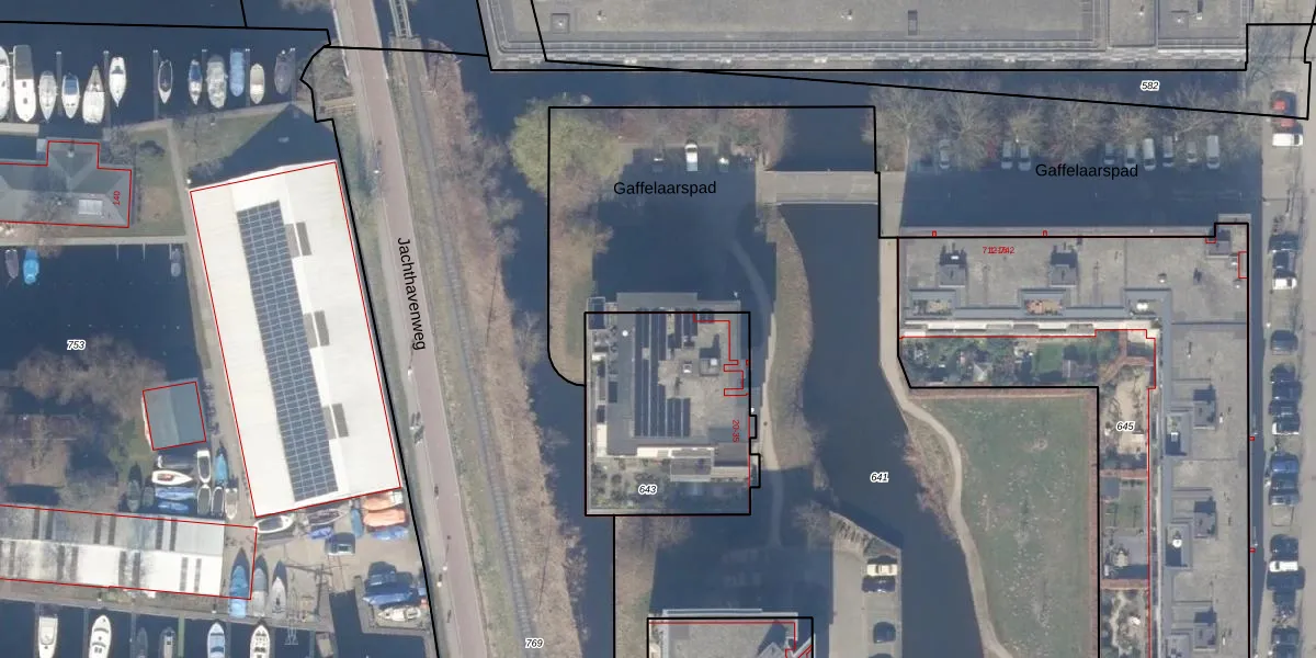 Gaffelaarspad 28 is gelegen op kadastraal perceel ASD25AD643. Deze kadastrale aanduiding is uniek en wordt gebruikt door het Kadaster om eigendomsrechten en andere zakelijke rechten vast te leggen. Het perceel maakt onderdeel uit van de kadastrale gemeente Amsterdam.