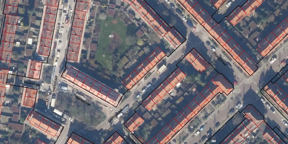 Het perceel waarop Gaffelstraat 28 staat heeft een oppervlakte van 4415 m². Dit is een zeer groot perceel. De perceeloppervlakte wordt geregistreerd door het Kadaster. Gedetailleerde informatie over de maten van dit perceel kunt u vinden in het rapport Kadastrale kaart met maatvoering van Gaffelstraat 28.