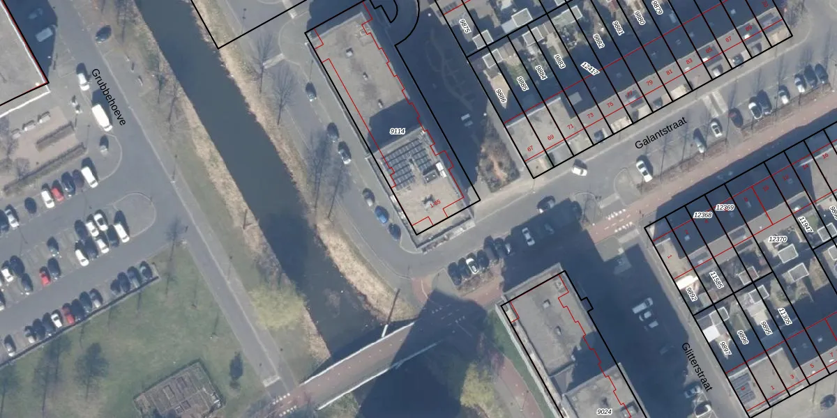 Het perceel waarop Galantstraat 15 staat heeft een oppervlakte van 1070 m². Dit is een zeer groot perceel. De perceeloppervlakte wordt geregistreerd door het Kadaster. Gedetailleerde informatie over de maten van dit perceel kunt u vinden in het rapport Kadastrale kaart met maatvoering van Galantstraat 15.