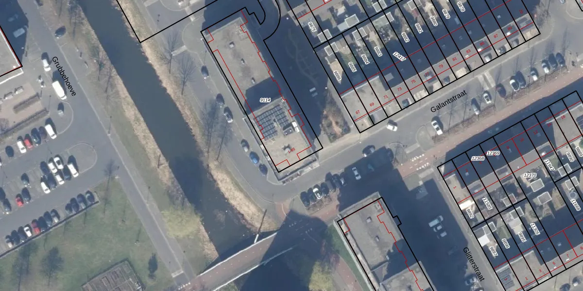 Het perceel waarop Galantstraat 43 staat heeft een oppervlakte van 1070 m². Dit is een zeer groot perceel. De perceeloppervlakte wordt geregistreerd door het Kadaster. Gedetailleerde informatie over de maten van dit perceel kunt u vinden in het rapport Kadastrale kaart met maatvoering van Galantstraat 43.