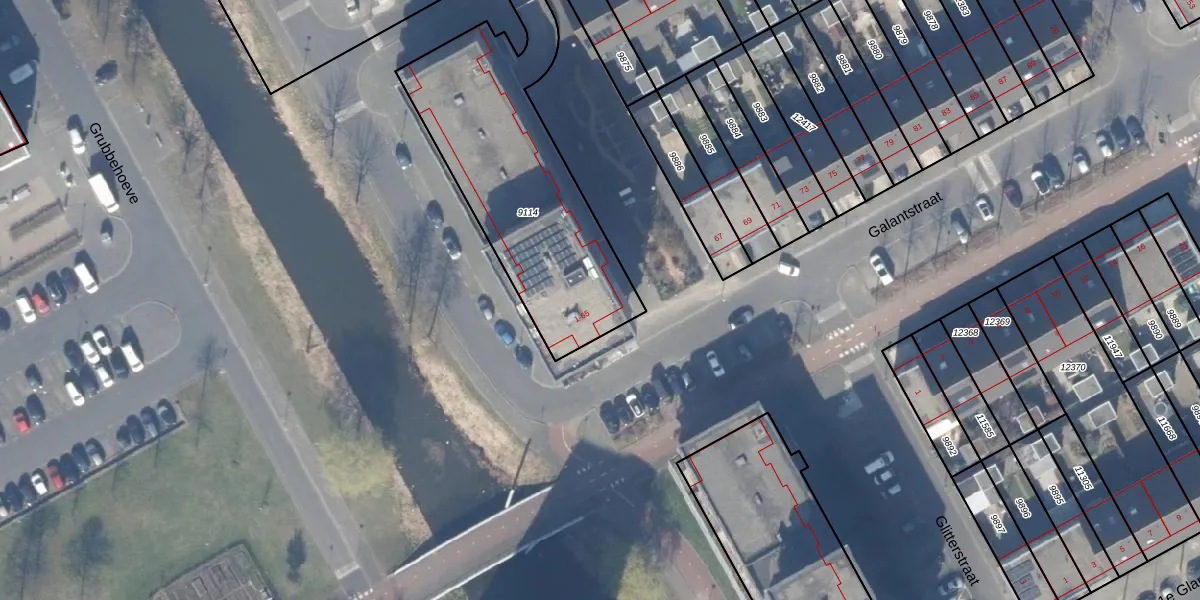 Het perceel waarop Galantstraat 63 staat heeft een oppervlakte van 1070 m². Dit is een zeer groot perceel. De perceeloppervlakte wordt geregistreerd door het Kadaster. Gedetailleerde informatie over de maten van dit perceel kunt u vinden in het rapport Kadastrale kaart met maatvoering van Galantstraat 63.