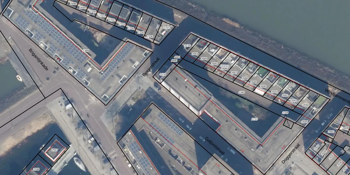 Het perceel waarop Galjootstraat 1 staat heeft een oppervlakte van 1920 m². Dit is een zeer groot perceel. De perceeloppervlakte wordt geregistreerd door het Kadaster. Gedetailleerde informatie over de maten van dit perceel kunt u vinden in het rapport Kadastrale kaart met maatvoering van Galjootstraat 1.
