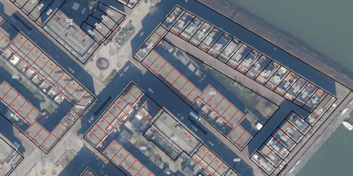 Het perceel waarop Galjootstraat 121 staat heeft een oppervlakte van 1967 m². Dit is een zeer groot perceel. De perceeloppervlakte wordt geregistreerd door het Kadaster. Gedetailleerde informatie over de maten van dit perceel kunt u vinden in het rapport Kadastrale kaart met maatvoering van Galjootstraat 121.