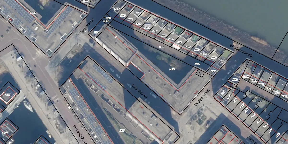 Het perceel waarop Galjootstraat 69 staat heeft een oppervlakte van 1920 m². Dit is een zeer groot perceel. De perceeloppervlakte wordt geregistreerd door het Kadaster. Gedetailleerde informatie over de maten van dit perceel kunt u vinden in het rapport Kadastrale kaart met maatvoering van Galjootstraat 69.