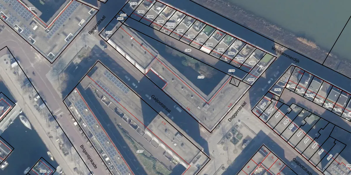 Het perceel waarop Galjootstraat 71 staat heeft een oppervlakte van 1920 m². Dit is een zeer groot perceel. De perceeloppervlakte wordt geregistreerd door het Kadaster. Gedetailleerde informatie over de maten van dit perceel kunt u vinden in het rapport Kadastrale kaart met maatvoering van Galjootstraat 71.