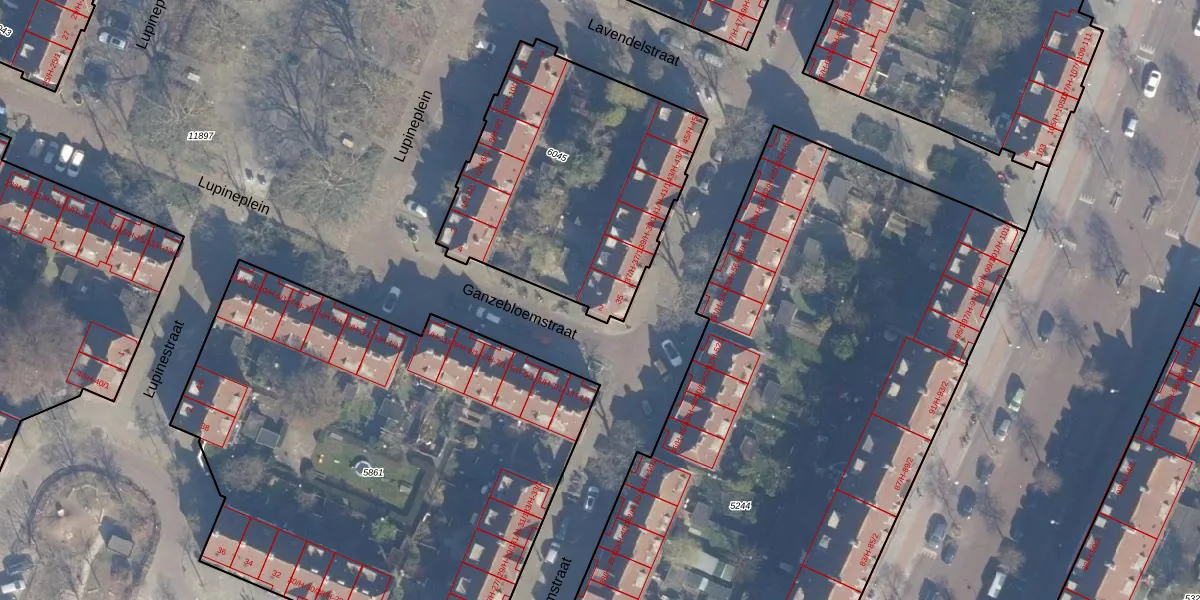 Het perceel waarop Ganzebloemstraat 2 staat heeft een oppervlakte van 1265 m². Dit is een zeer groot perceel. De perceeloppervlakte wordt geregistreerd door het Kadaster. Gedetailleerde informatie over de maten van dit perceel kunt u vinden in het rapport Kadastrale kaart met maatvoering van Ganzebloemstraat 2.