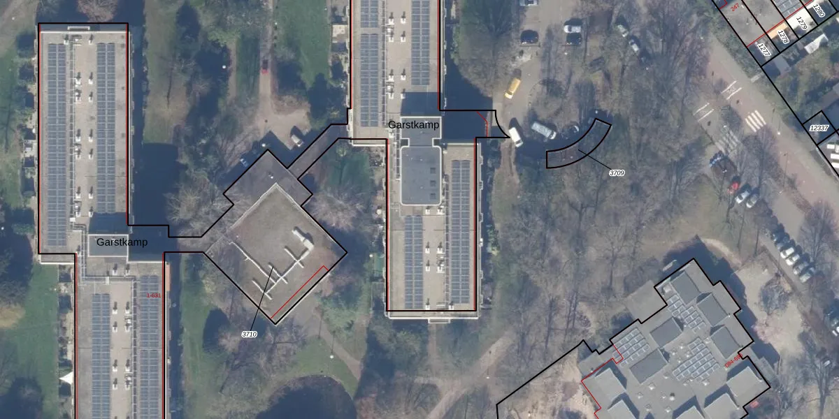 Het perceel waarop Garstkamp 437 staat heeft een oppervlakte van 5395 m². Dit is een zeer groot perceel. De perceeloppervlakte wordt geregistreerd door het Kadaster. Gedetailleerde informatie over de maten van dit perceel kunt u vinden in het rapport Kadastrale kaart met maatvoering van Garstkamp 437.