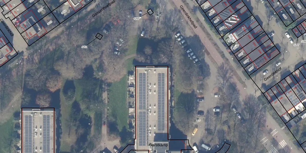 Het perceel waarop Garstkamp 57 staat heeft een oppervlakte van 5395 m². Dit is een zeer groot perceel. De perceeloppervlakte wordt geregistreerd door het Kadaster. Gedetailleerde informatie over de maten van dit perceel kunt u vinden in het rapport Kadastrale kaart met maatvoering van Garstkamp 57.