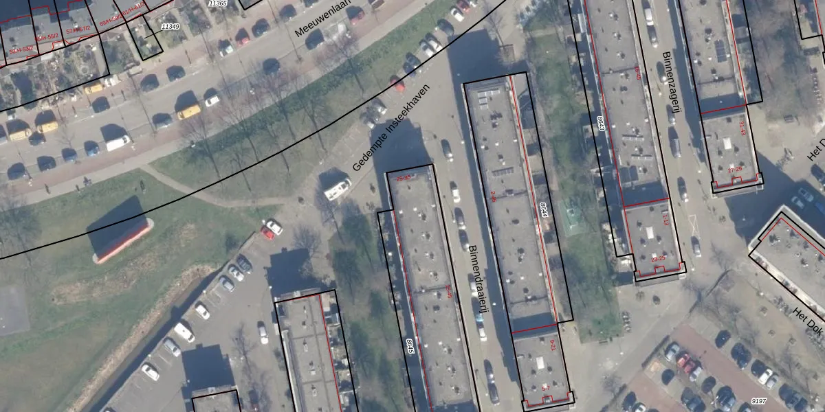 Het perceel waarop Gedempte Insteekhaven 33 staat heeft een oppervlakte van 1186 m². Dit is een zeer groot perceel. De perceeloppervlakte wordt geregistreerd door het Kadaster. Gedetailleerde informatie over de maten van dit perceel kunt u vinden in het rapport Kadastrale kaart met maatvoering van Gedempte Insteekhaven 33.