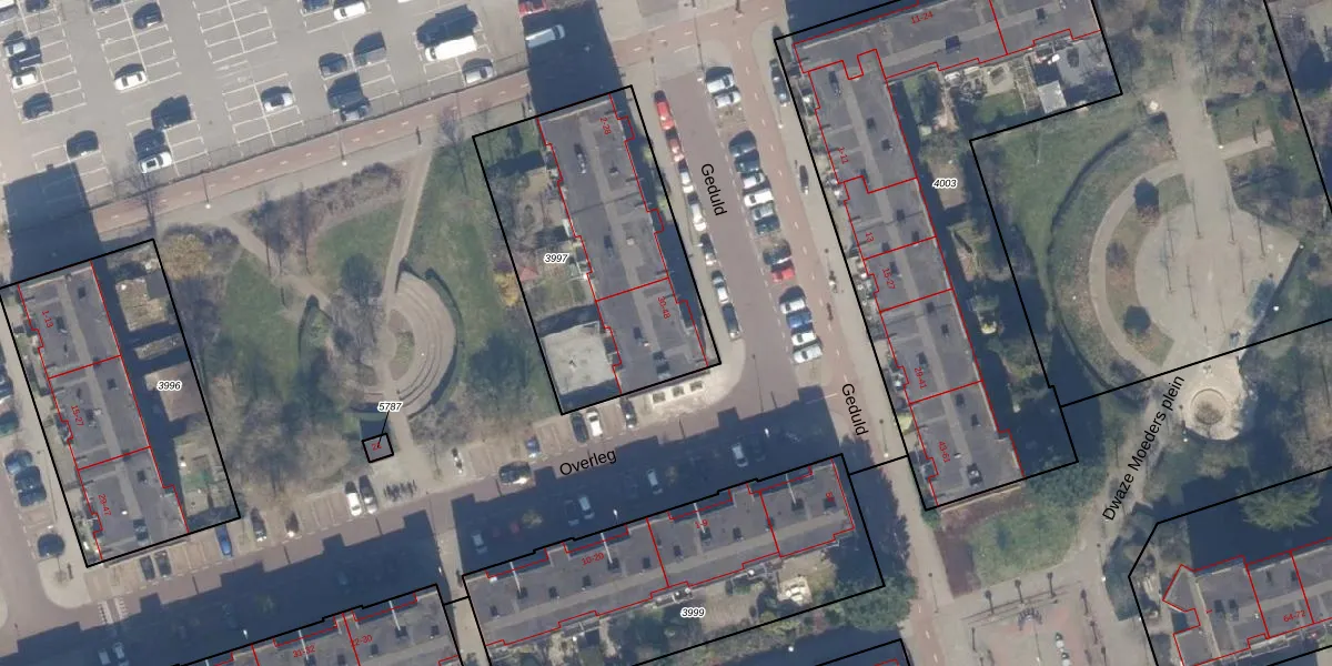 Het perceel waarop Geduld 44 staat heeft een oppervlakte van 1096 m². Dit is een zeer groot perceel. De perceeloppervlakte wordt geregistreerd door het Kadaster. Gedetailleerde informatie over de maten van dit perceel kunt u vinden in het rapport Kadastrale kaart met maatvoering van Geduld 44.