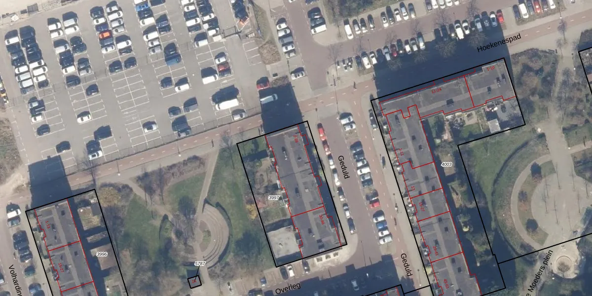 Het perceel waarop Geduld 8 staat heeft een oppervlakte van 1096 m². Dit is een zeer groot perceel. De perceeloppervlakte wordt geregistreerd door het Kadaster. Gedetailleerde informatie over de maten van dit perceel kunt u vinden in het rapport Kadastrale kaart met maatvoering van Geduld 8.