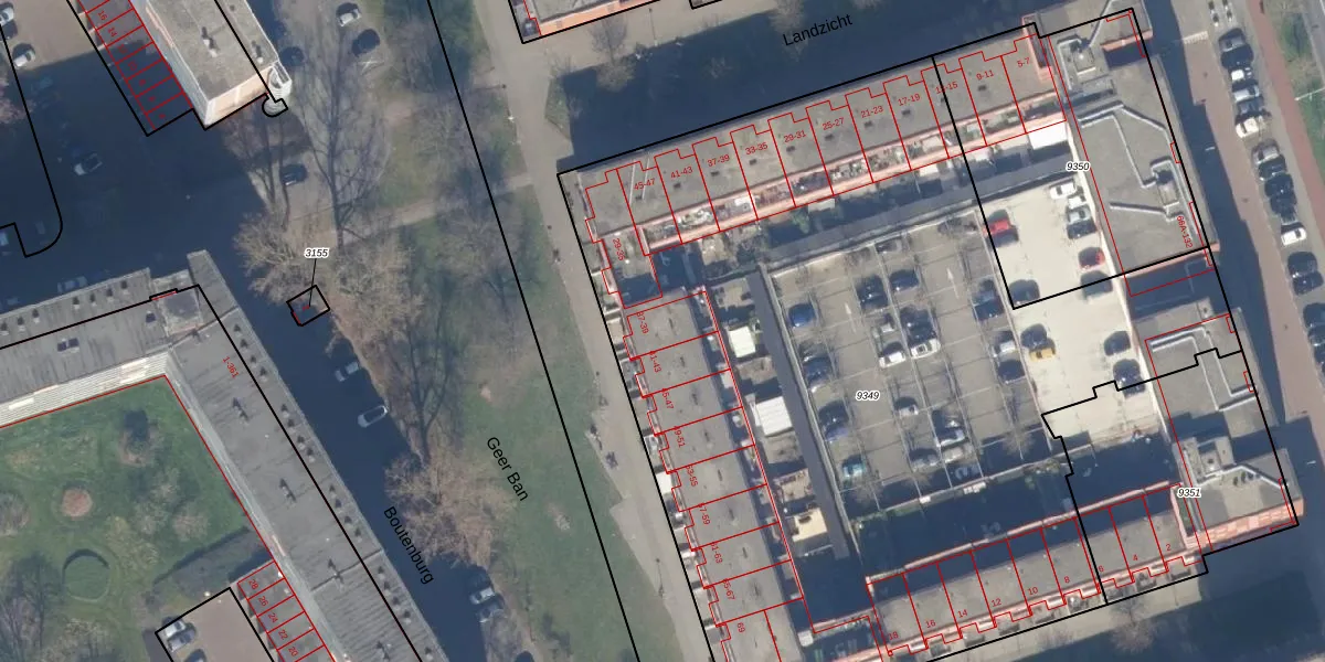 Het perceel waarop Geer Ban 39 staat heeft een oppervlakte van 5673 m². Dit is een zeer groot perceel. De perceeloppervlakte wordt geregistreerd door het Kadaster. Gedetailleerde informatie over de maten van dit perceel kunt u vinden in het rapport Kadastrale kaart met maatvoering van Geer Ban 39.