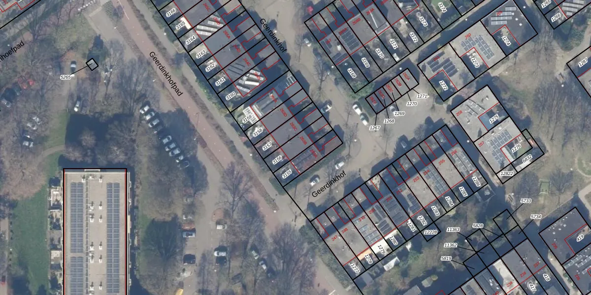 Geerdinkhof 263-B is gelegen op kadastraal perceel WPK02L3156. Deze kadastrale aanduiding is uniek en wordt gebruikt door het Kadaster om eigendomsrechten en andere zakelijke rechten vast te leggen. Het perceel maakt onderdeel uit van de kadastrale gemeente Weesperkarspel.