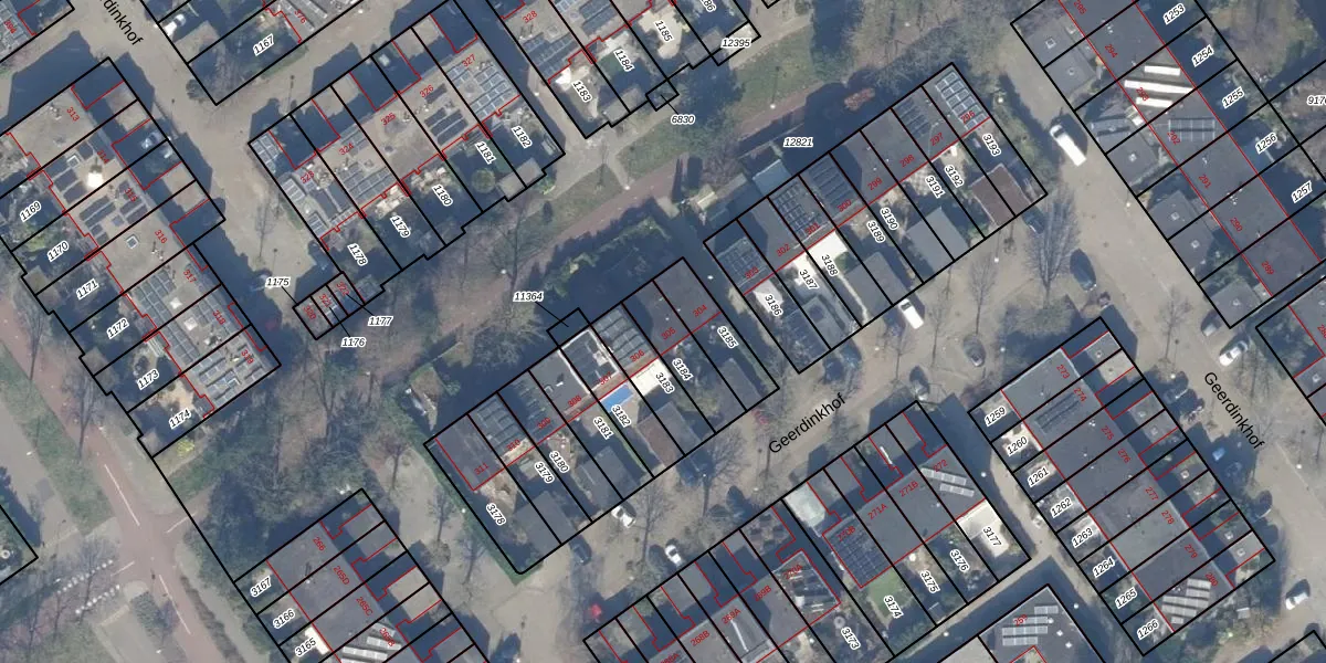 Het perceel waarop Geerdinkhof 305 staat heeft een oppervlakte van 141 m². Dit is een middelgroot perceel. De perceeloppervlakte wordt geregistreerd door het Kadaster. Gedetailleerde informatie over de maten van dit perceel kunt u vinden in het rapport Kadastrale kaart met maatvoering van Geerdinkhof 305.