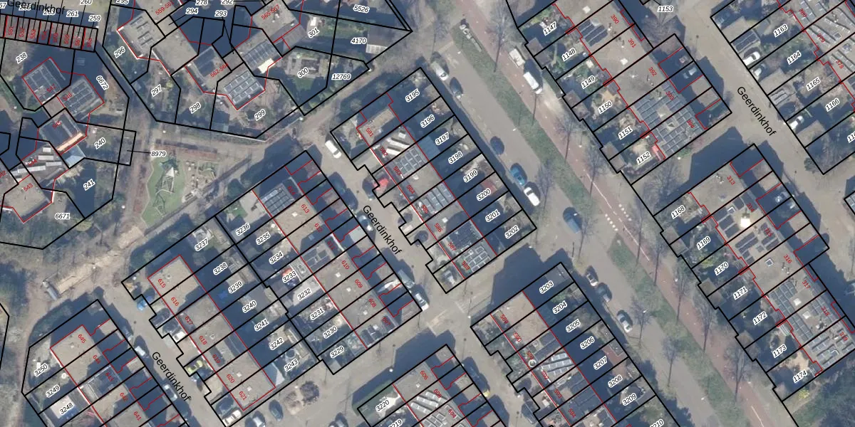 Geerdinkhof 585 is gelegen op kadastraal perceel WPK02L3199. Deze kadastrale aanduiding is uniek en wordt gebruikt door het Kadaster om eigendomsrechten en andere zakelijke rechten vast te leggen. Het perceel maakt onderdeel uit van de kadastrale gemeente Weesperkarspel.