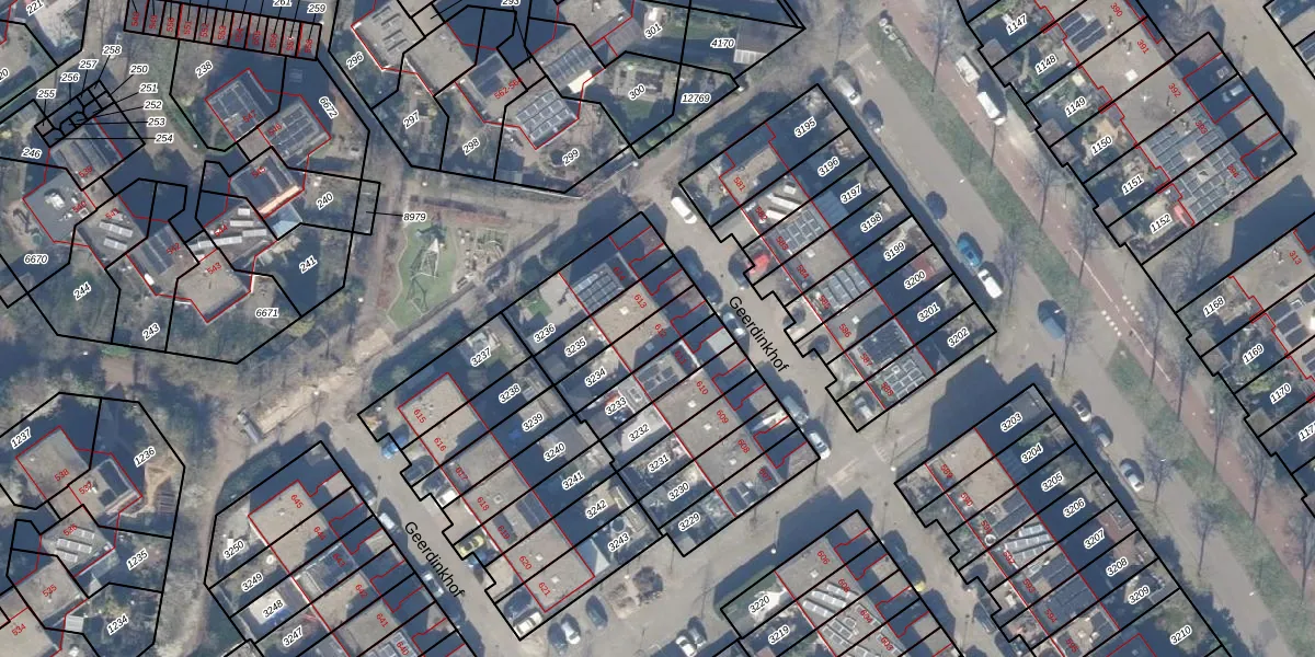 Het perceel waarop Geerdinkhof 612 staat heeft een oppervlakte van 142 m². Dit is een middelgroot perceel. De perceeloppervlakte wordt geregistreerd door het Kadaster. Gedetailleerde informatie over de maten van dit perceel kunt u vinden in het rapport Kadastrale kaart met maatvoering van Geerdinkhof 612.