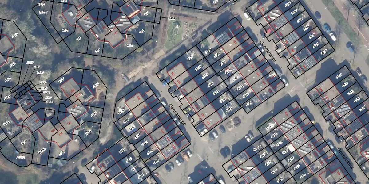 Geerdinkhof 617 is gelegen op kadastraal perceel WPK02L3239. Deze kadastrale aanduiding is uniek en wordt gebruikt door het Kadaster om eigendomsrechten en andere zakelijke rechten vast te leggen. Het perceel maakt onderdeel uit van de kadastrale gemeente Weesperkarspel.