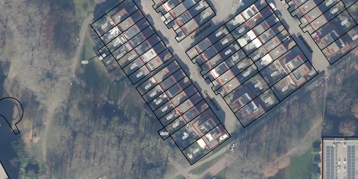 Geerdinkhof 665 is gelegen op kadastraal perceel WPK02L3278. Deze kadastrale aanduiding is uniek en wordt gebruikt door het Kadaster om eigendomsrechten en andere zakelijke rechten vast te leggen. Het perceel maakt onderdeel uit van de kadastrale gemeente Weesperkarspel.