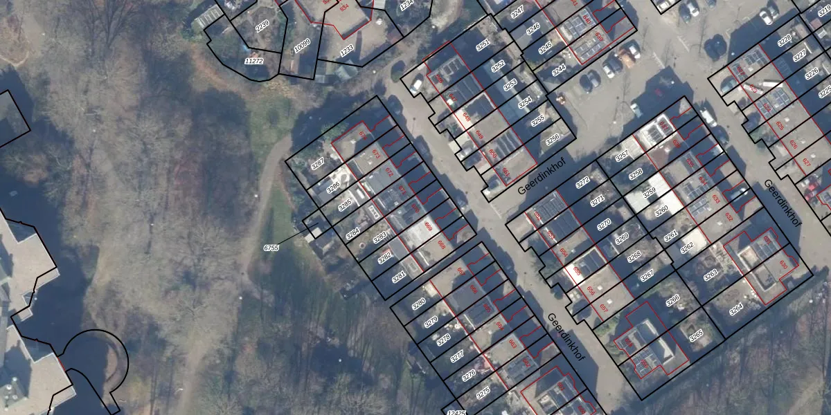 Geerdinkhof 670 is gelegen op kadastraal perceel WPK02L3283. Deze kadastrale aanduiding is uniek en wordt gebruikt door het Kadaster om eigendomsrechten en andere zakelijke rechten vast te leggen. Het perceel maakt onderdeel uit van de kadastrale gemeente Weesperkarspel.
