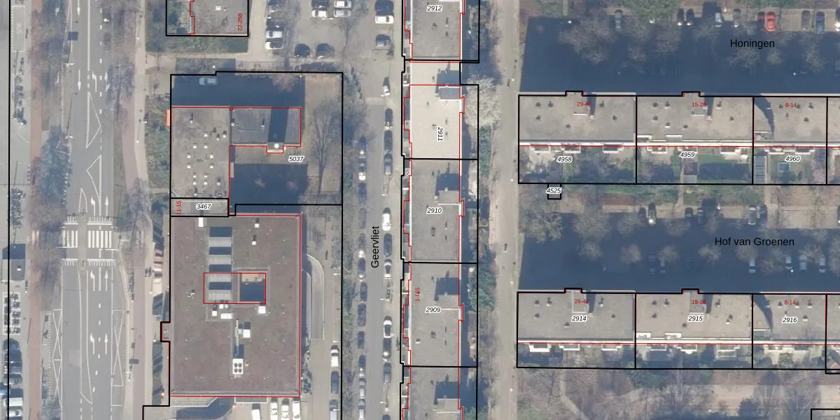 Het perceel waarop Geervliet 103 staat heeft een oppervlakte van 452 m². Dit is een groot perceel. De perceeloppervlakte wordt geregistreerd door het Kadaster. Gedetailleerde informatie over de maten van dit perceel kunt u vinden in het rapport Kadastrale kaart met maatvoering van Geervliet 103.
