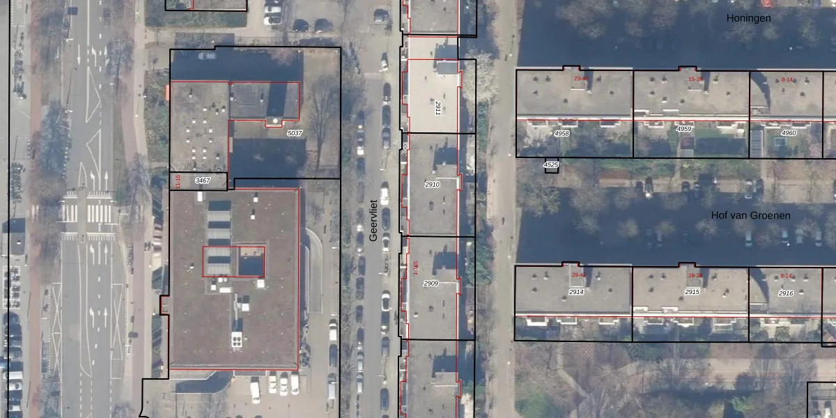 Het perceel waarop Geervliet 109 staat heeft een oppervlakte van 452 m². Dit is een groot perceel. De perceeloppervlakte wordt geregistreerd door het Kadaster. Gedetailleerde informatie over de maten van dit perceel kunt u vinden in het rapport Kadastrale kaart met maatvoering van Geervliet 109.
