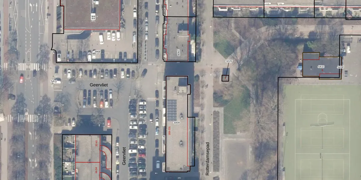 Het perceel waarop Geervliet 181 staat heeft een oppervlakte van 759 m². Dit is een groot perceel. De perceeloppervlakte wordt geregistreerd door het Kadaster. Gedetailleerde informatie over de maten van dit perceel kunt u vinden in het rapport Kadastrale kaart met maatvoering van Geervliet 181.